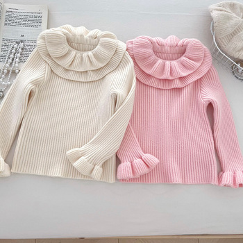Jersey de cuello para niña, suéter de otoño e invierno 2025, suéter de punto de nuevo estilo, capa Base elástica de Color sólido para niñas